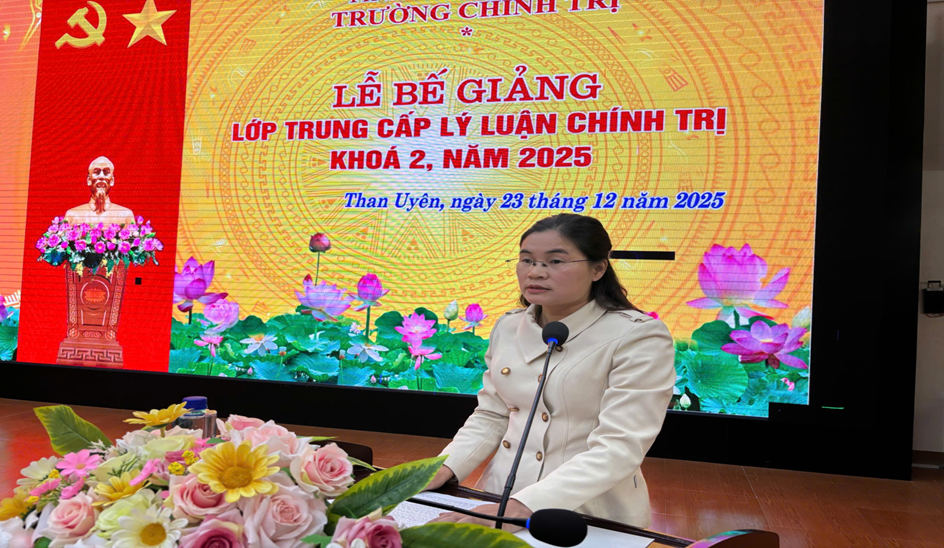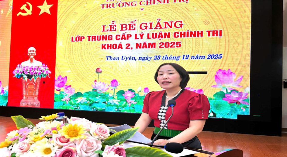 ......................Phát biểu tại Lễ bế giảng, đồng chí Lê Thị Hợp - Phó Bí thư Thường trực Đảng ủy xã Than Uyên chúc mừng và ghi nhận kết quả của lớp học; đồng thời khẳng định khóa học có ý nghĩa thiết thực trong việc nâng cao trình độ lý luận, kỹ năng công tác cho đội ngũ cán bộ cơ sở, đáp ứng yêu cầu phục vụ Nhân dân và nhiệm vụ phát triển địa phương trong giai đoạn mới.