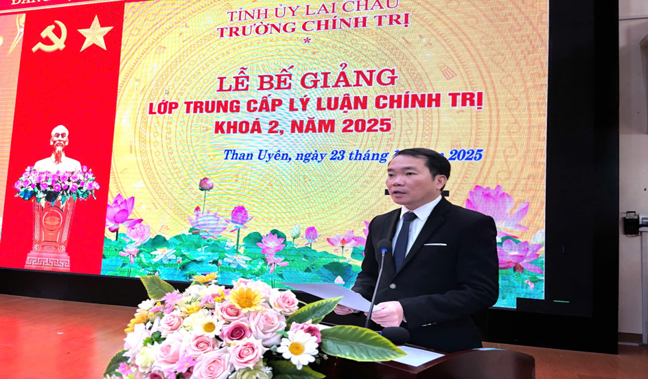 ......................Phát biểu bế mạc, đồng chí Lê Chí Công, Ủy viên Ban Chấp hành Đảng bộ tỉnh, Hiệu trưởng Trường Chính trị tỉnh biểu dương và ghi nhận tinh thần trách nhiệm, ý thức tổ chức kỷ luật, thái độ học tập nghiêm túc của toàn thể học viên trong suốt quá trình tham gia khóa học. Đồng chí nhấn mạnh: Trong bối cảnh tỉnh đang triển khai, vận hành mô hình chính quyền địa phương 2 cấp, yêu cầu đặt ra đối với đội ngũ cán bộ cơ sở ngày càng cao, đòi hỏi phải không ngừng nâng cao năng lực tư duy lý luận, bản lĩnh chính trị, phương pháp và kỹ năng công tác. Trên cơ sở đó, đồng chí khẳng định khóa học đã trang bị cho học viên những nền tảng quan trọng về lý luận chính trị, phương pháp tư duy khoa học và kỹ năng xử lý các tình huống thực tiễn, góp phần thiết thực nâng cao năng lực thực thi nhiệm vụ tại cơ sở. Đồng chí đề nghị sau khóa học, mỗi học viên tiếp tục phát huy kết quả đã đạt được, chủ động tự học, tự rèn luyện, vận dụng sáng tạo kiến thức được trang bị vào thực tiễn công tác, góp phần thực hiện thắng lợi Nghị quyết Đại hội Đảng bộ các cấp, nhiệm kỳ 2025 - 2030.