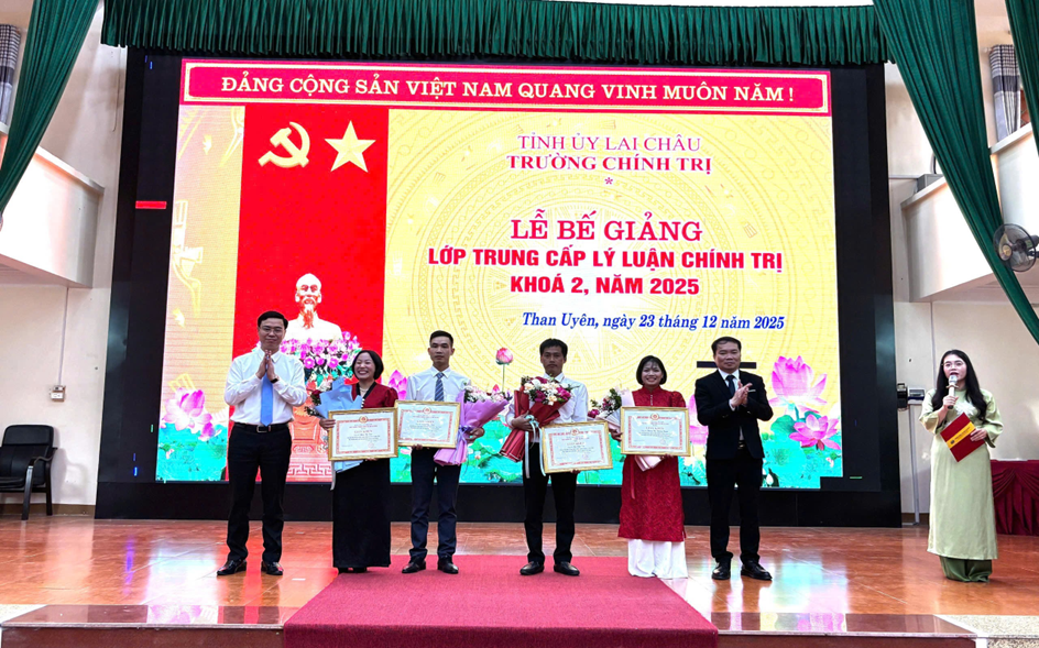 ......................Dự Lễ bế có các đồng chí: Lê Chí Công, Ủy viên Ban Chấp hành Đảng bộ tỉnh, Hiệu trưởng Trường Chính trị tỉnh; Lê Thị Hợp, Phó Bí thư Thường trực Đảng ủy xã Than Uyên; đại diện lãnh đạo các xã Mường Than, Mường Kim, Khoen On; lãnh đạo các phòng, ban chuyên môn của xã Than Uyên; lãnh đạo các khoa, phòng và giảng viên Trường Chính trị tỉnh và 47 học viên lớp Trung cấp lý luận chính trị khóa 2 năm 2025.