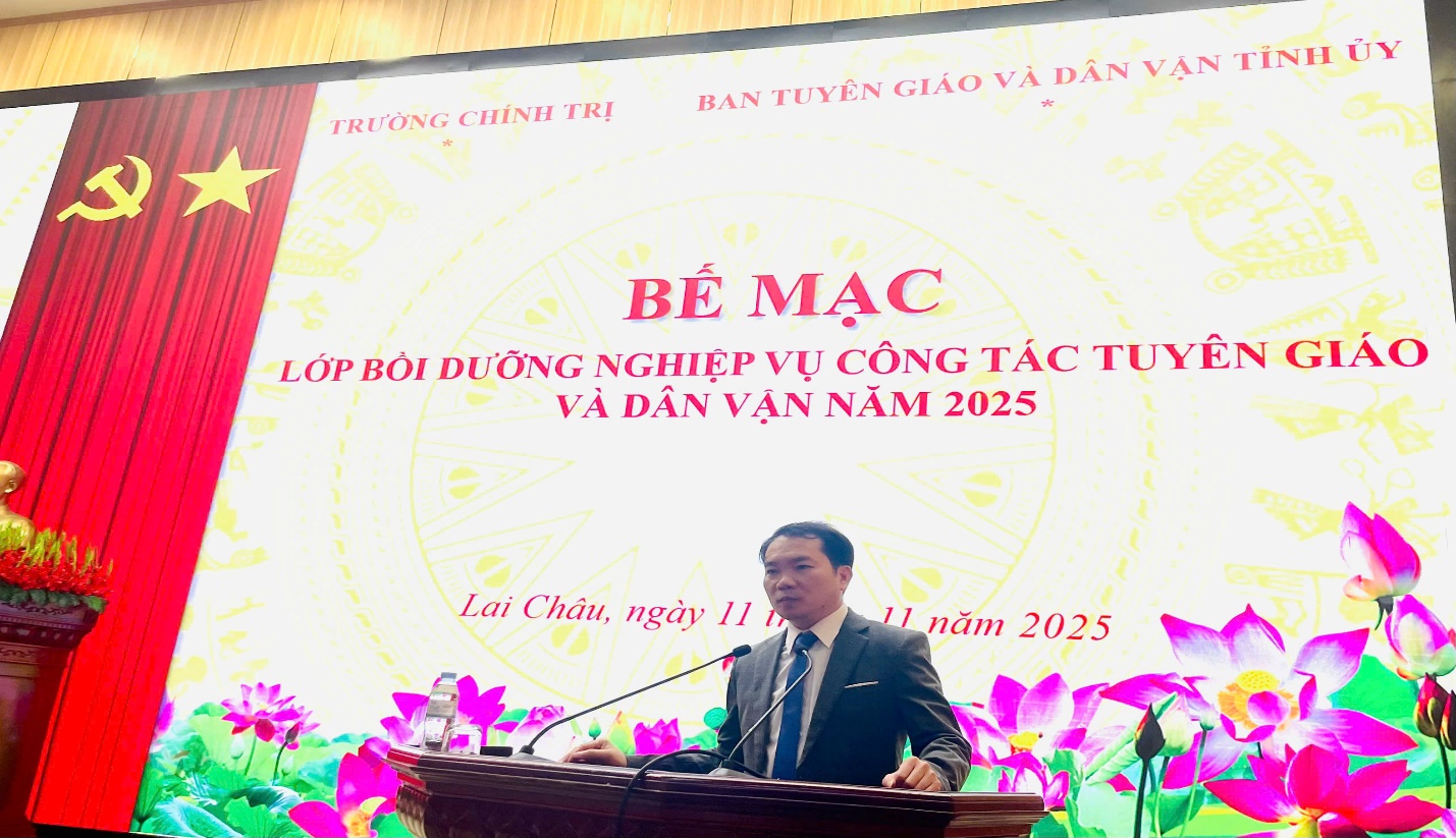 ....................Chương trình lớp bồi dưỡng diễn ra trong 02 ngày (từ ngày 10/11 đến 11/11/2025), học viên được các đồng chí lãnh đạo Ban Tuyên giáo và Dân vận Tỉnh ủy, Trường Chính trị tỉnh trực tiếp truyền đạt 07 chuyên đề trọng tâm. Trong quá trình trao đổi các chuyên đề, các giảng viên, báo cáo viên đã cập nhật nhiều kiến thức mới, thiết thực, bám sát yêu cầu thực tiễn về công tác tuyên giáo, dân vận; chú trọng bồi dưỡng kỹ năng tuyên truyền, nắm bắt tư tưởng; cách xử lý tình huống thực tiễn giúp học viên nắm vững hơn chủ trương, đường lối, chính sách của Đảng và Nhà nước; hiểu sâu những vấn đề mới, khó trong công tác tư tưởng, tuyên giáo, dân vận hiện nay. Đặc biệt là nhiệm vụ về đấu tranh phản bác các luận điệu sai trái, thù địch, góp phần bảo vệ Đảng, bảo vệ nền tảng tư tưởng của Đảng và xây dựng chế độ xã hội chủ nghĩa trong kỷ nguyên mới của dân tộc. Trong quá trình học tập, các học viên đã phát huy tinh thần chủ động, nghiêm túc, tích cực trao đổi, chia sẻ những khó khăn, vướng mắc và đề xuất ý kiến, tạo bầu không khí cởi mở, sôi nổi và tinh thần học tập tích cực cho lớp bồi dưỡng.