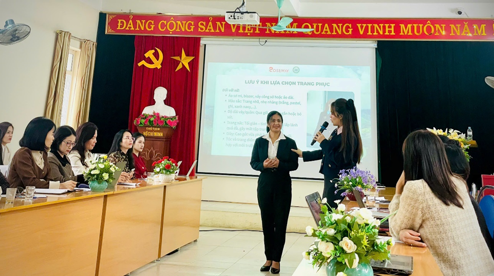 ..................Thông qua các nội dung được giảng viên Công ty Roseway trực tiếp hướng dẫn, học viên đã được rèn luyện khả năng làm chủ giọng nói, hơi thở, ngữ điệu, cảm xúc và ngôn ngữ cơ thể; đồng thời biết cách thể hiện phong thái tự tin, truyền cảm hứng trong thuyết trình, giảng dạy và giao tiếp. Các hoạt động tương tác, thực hành, hoạt động nhóm giúp học viên nhận diện ưu - khuyết điểm của bản thân, từng bước điều chỉnh, hoàn thiện kỹ năng sư phạm, kỹ năng biểu đạt và khả năng thuyết phục.