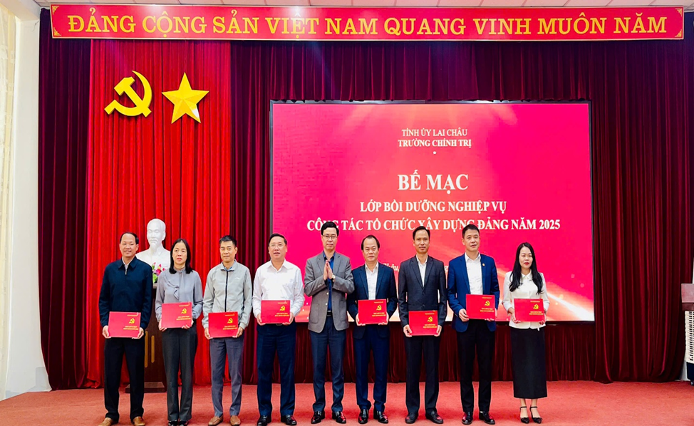 ................Phát biểu bế mạc, đồng chí Lê Chí Công, Ủy viên Ban Chấp hành Đảng bộ tỉnh, Hiệu trưởng Nhà trường khẳng định: Lớp Bồi dưỡng đã hoàn thành đầy đủ mục tiêu, yêu cầu đề ra, góp phần thiết thực nâng cao trình độ, năng lực cho đội ngũ cán bộ làm công tác tổ chức xây dựng Đảng trong tham mưu chiến lược cho cấp ủy các cấp về công tác cán bộ và xây dựng Đảng. Kết quả lớp học đã giúp tăng cường sự thống nhất về nhận thức, phương pháp và kỹ năng; hỗ trợ cán bộ cơ sở thực hiện hiệu quả các quy định, quy trình của Đảng trong công tác tổ chức xây dựng Đảng; qua đó đóng góp tích cực vào nhiệm vụ xây dựng hệ thống chính trị tỉnh Lai Châu ngày càng trong sạch, vững mạnh, đáp ứng yêu cầu của Đại hội Đảng bộ tỉnh lần thứ XV và hướng tới Đại hội XIV của Đảng. Đồng chí đề nghị các học viên, trên cơ sở kiến thức đã được trang bị, tiếp tục nghiên cứu, vận dụng sáng tạo vào thực tiễn, nâng cao chất lượng tham mưu và tổ chức thực hiện nhiệm vụ xây dựng Đảng tại cơ quan, đơn vị, địa phương; đóng góp vào sự phát triển chung của tỉnh trong giai đoạn mới.