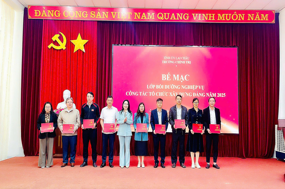 ................Lớp Bồi dưỡng nghiệp vụ công tác tổ chức xây dựng Đảng năm 2025 đã đạt được những kết quả thiết thực và toàn diện. Kết thúc lớp học, 100% học viên được Hiệu trưởng Trường Chính trị tỉnh cấp Giấy chứng nhận hoàn thành khóa bồi dưỡng.