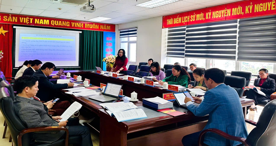 ..................Kết luận phiên họp, Thạc sĩ Nguyễn Minh Hiệu - Chủ tịch Hội đồng nghiệm thu đề tài khoa học cấp tỉnh khẳng định: “Đề tài đã hoàn thành mục tiêu, có giá trị khoa học và thực tiễn cao, là tài liệu tham khảo hữu ích phục vụ công tác lãnh đạo, chỉ đạo, đồng thời góp phần thiết thực nâng cao chất lượng đào tạo, bồi dưỡng lý luận chính trị trên địa bàn tỉnh”. Hội đồng thống nhất nghiệm thu và đánh giá đề tại ở mức “Đạt”; đồng thời đề nghị nhóm nghiên cứu tiếp thu đầy đủ các ý kiến góp ý để hoàn thiện, sớm đưa kết quả nghiên cứu vào thực tiễn.