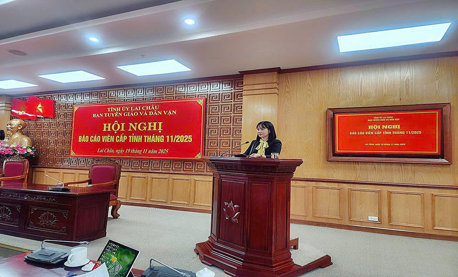 .................Đồng chí Đào Thị Thanh Nhàn, Phó Trưởng Ban Thường trực Ban Tuyên giáo và Dân vận Tỉnh ủy, truyền đạt những nội dung cốt lõi, kết luận quan trọng của Hội nghị Trung ương 14, nhất là những định hướng lớn chuẩn bị cho Đại hội XIV của Đảng. Thông tin giúp đội ngũ báo cáo viên nắm chắc quan điểm, chủ trương của Đảng, từ đó kịp thời tuyên truyền sâu rộng đến các tầng lớp nhân dân.