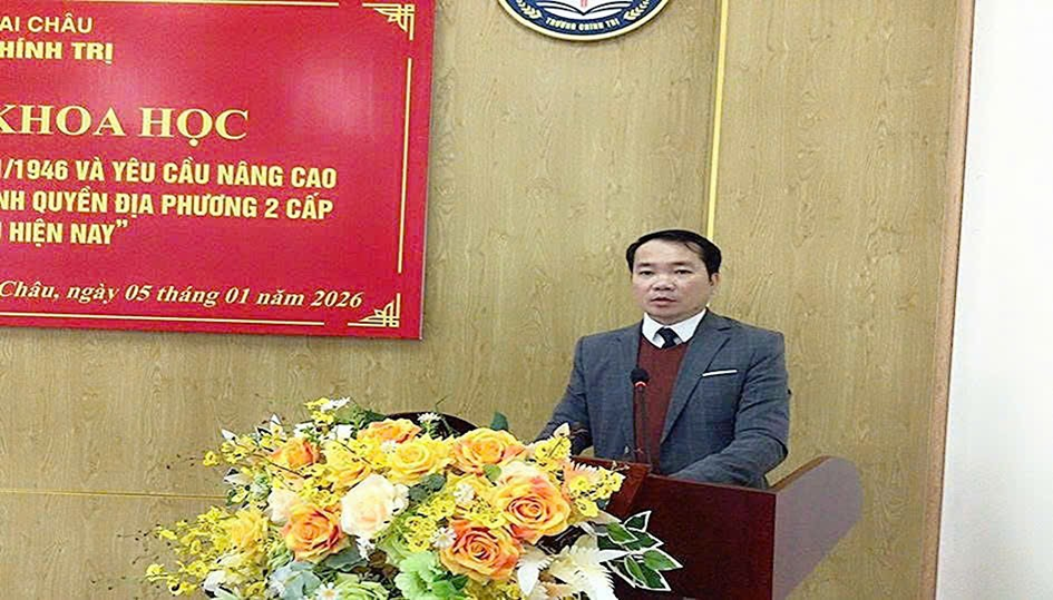 ..............Phát biểu kết luận Hội thảo, đồng chí Lê Chí Công, Ủy viên Ban Chấp hành Đảng bộ tỉnh, Hiệu trưởng, Chủ tịch Hội đồng khoa học Nhà trường khẳng định: Hội thảo không chỉ là hoạt động nghiên cứu khoa học, mà còn là hoạt động chính trị - tư tưởng quan trọng, góp phần thống nhất nhận thức, định hướng hành động trong đội ngũ cán bộ, giảng viên, học viên về việc vận dụng sáng tạo tinh thần Tổng tuyển cử 06/01/1946 vào xây dựng và vận hành hiệu quả chính quyền địa phương hai cấp ở tỉnh Lai Châu hiện nay. Trên cơ sở kết quả Hội thảo, Nhà trường sẽ tiếp tục đẩy mạnh nghiên cứu khoa học, tổng kết thực tiễn; đổi mới nội dung, phương pháp đào tạo, bồi dưỡng; chuyển hóa các luận cứ khoa học thành tri thức và năng lực quản trị cụ thể cho đội ngũ cán bộ cơ sở, góp phần thực hiện thắng lợi nhiệm vụ chính trị của tỉnh trong tình hình mới.