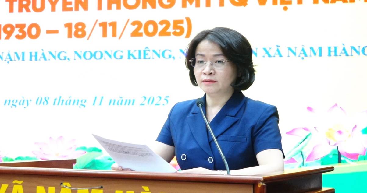 Đồng chí Lê Thị Hường - Ủy viên Ban Thường vụ, Trưởng Ban Tổ chức Tỉnh ủy phát biểu tại ngày hội.