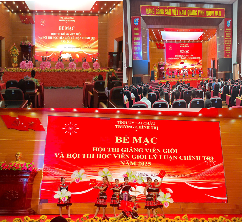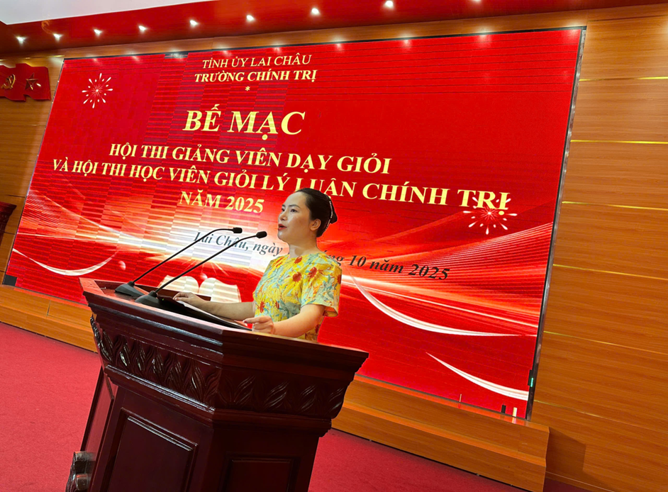 ..................Trong không khí thi đua sôi nổi lập thành tích chào mừng thành công Đại hội Đảng bộ tỉnh Lai Châu lần thứ XV, nhiệm kỳ 2025 - 2030, hướng tới Đại hội đại biểu toàn quốc lần thứ XIV của Đảng và kỷ niệm 76 năm Ngày thành lập Đảng bộ tỉnh (10/10/1949 - 10/10/2025), 43 năm Ngày Nhà giáo Việt Nam (20/11/1982 - 20/11/2025), Trường Chính trị tỉnh Lai Châu đã tổ chức Hội thi Giảng viên dạy giỏi cấp trường và Hội thi Học viên giỏi lý luận chính trị năm 2025. Đây là hoạt động có ý nghĩa chính trị, chuyên môn sâu sắc, thể hiện rõ bản lĩnh, trí tuệ, tinh thần đổi mới, sáng tạo của đội ngũ giảng viên, học viên nhà trường trong giai đoạn mới.