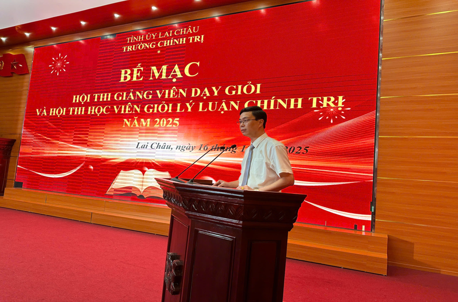 ..................Phát biểu bế mạc Hội thi, đồng chí Tạ Ngọc Thủy khẳng định: Thành công của Hội thi khẳng định chất lượng đào tạo, bồi dưỡng lý luận chính trị của Trường Chính trị tỉnh Lai Châu ngày càng được nâng cao, đồng thời minh chứng cho sự lãnh đạo, chỉ đạo đúng đắn của Thường trực Tỉnh ủy, sự hướng dẫn, đồng hành của Học viện Chính trị quốc gia Hồ Chí Minh, cùng nỗ lực không ngừng của tập thể cán bộ, giảng viên, học viên Nhà trường. Thành công của Hội thi không chỉ dừng lại ở kết quả thi đua, mà còn có ý nghĩa chính trị, tư tưởng sâu sắc, khẳng định vai trò trung tâm của Trường Chính trị tỉnh Lai Châu trong công tác đào tạo, bồi dưỡng cán bộ của Đảng ở địa phương, trung tâm lan tỏa ánh sáng chủ nghĩa Mác - Lênin, tư tưởng Hồ Chí Minh và đường lối của Đảng, chính sách, pháp luật của Nhà nước đến với đội ngũ cán bộ, đảng viên toàn tỉnh.