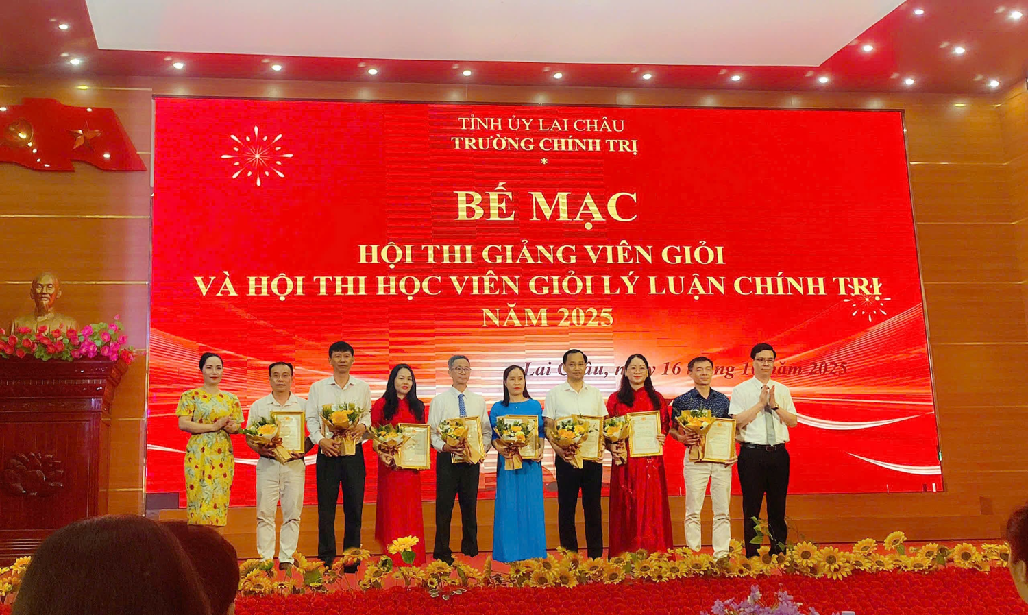 ..................Sau những ngày làm việc khẩn trương, nghiêm túc, với tinh thần trách nhiệm cao, đoàn kết, sáng tạo và đầy nhiệt huyết, đến nay, Hội thi Giảng viên dạy giỏi cấp Trường và Hội thi Học viên giỏi lý luận chính trị năm 2025 của Trường Chính trị tỉnh Lai Châu đã thành công tốt đẹp, để lại nhiều ấn tượng sâu sắc trong toàn thể đội ngũ giảng viên, học viên Nhà trường.